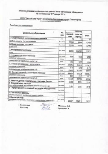 Қаржылық қызмет көрсеткіштері 01.01.2021 ж.